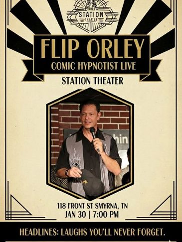 Live for one night at The Station Theater. On Friday Night January 30th @ 7:00 Flip Orley brings his one of a kind show to downtown Smyrna Tn. This is a show you do not want to miss. Tickets are $15.